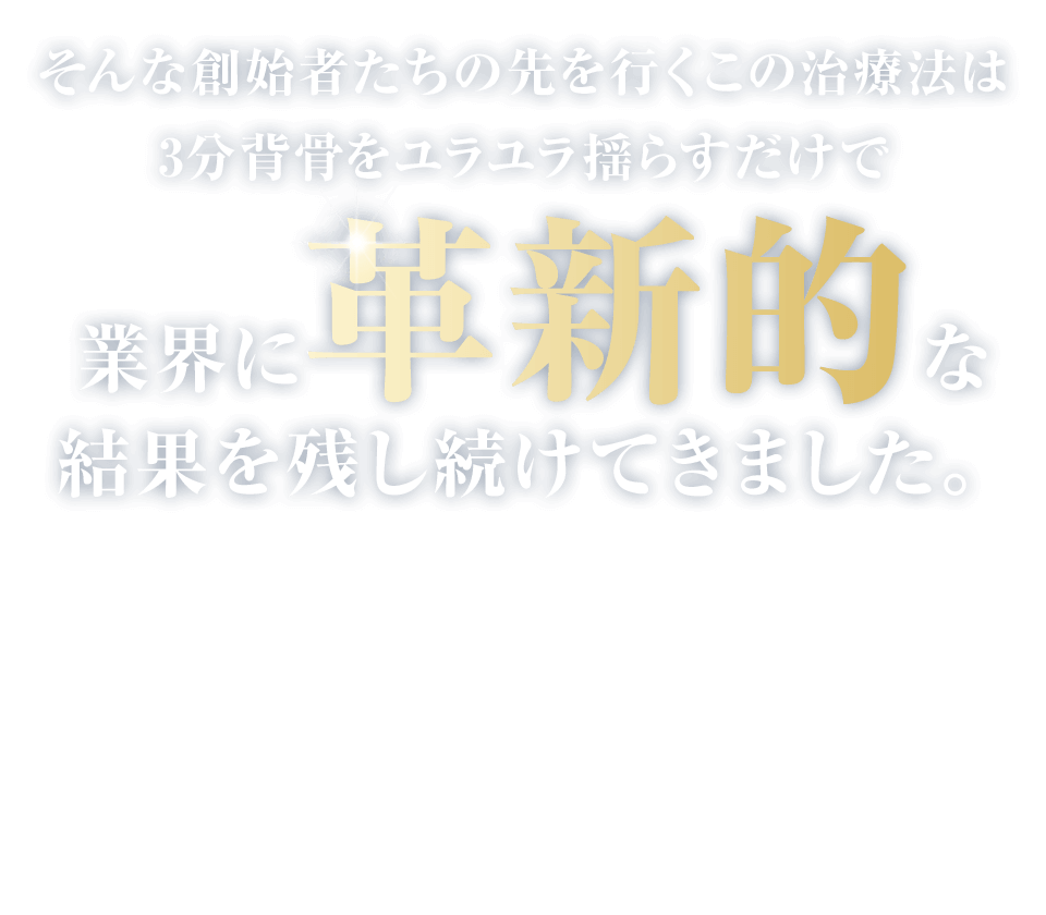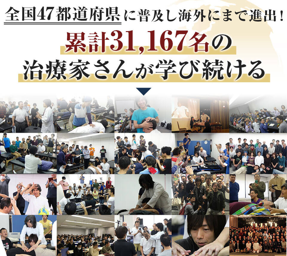 常識を覆す治療効果で総勢31,167名以上の治療家を心酔させこの業界に希望を与えました。